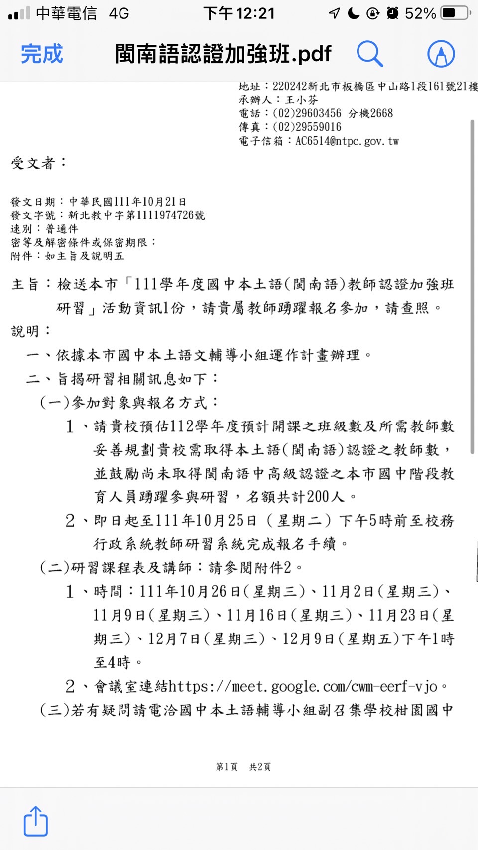 公文-閩南語文輔導認證研習課程實施計畫.pdf